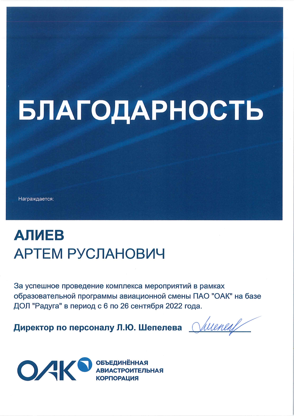 Студенты 6 курса кафедры летательные аппараты с 6 по 26 сентября на базе ДОЛ «Радуга» провели для детей предприятий ОАК авиационную смену, в течении которой они познакомились с основами авиационной техники, узнали почему создается подъемная сила и из каких элементов состоит квадрокоптер, также отрабатывали навыки управления летательными аппаратами.